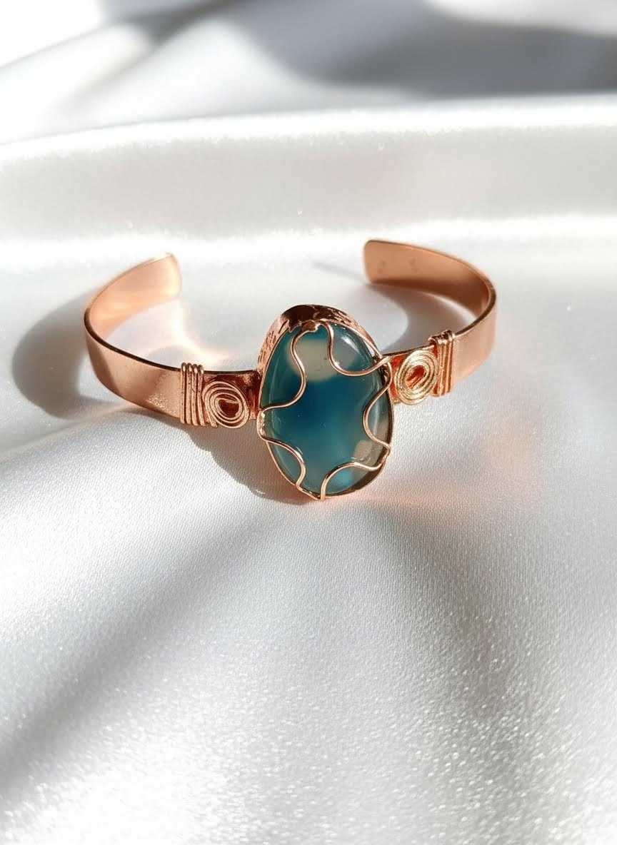 Sanatsal El Sarımı: Akik taşını çevreleyen ve yanlarda devam eden spiral tel sarım detayları, ürünün tamamen el işçiliğiyle üretildiğinin birer imzasıdır.