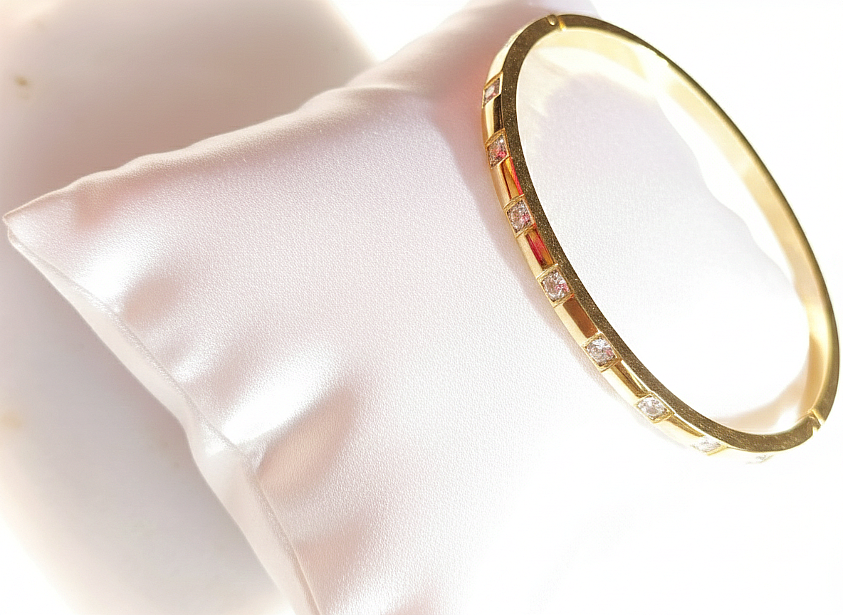 ÇLK-GOLD-106 Verev Taş Sıralı Gold Çelik Kelepçe