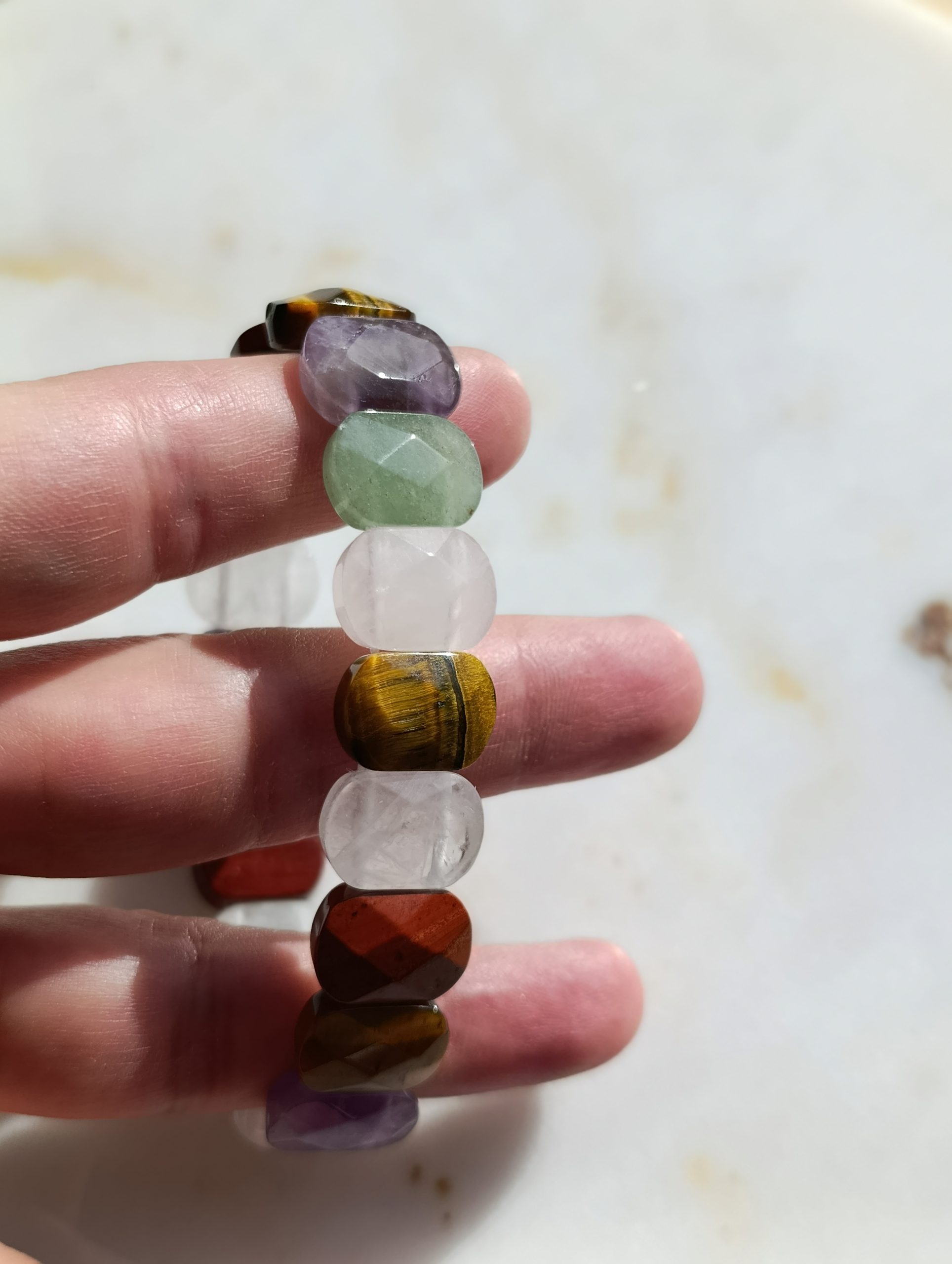 FASETLİ RONDEL KESİM KARMA ENERJİ DOĞAL TAŞ BİLEKLİK